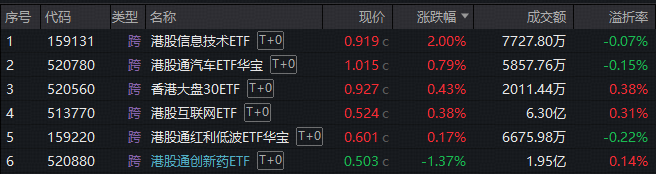 港股市场全线回暖,恒指收涨0.86%,硬科技引领,恒科指强劲反弹1.74%,全市场首只聚焦“港股芯片”产业链的港股信息技术ETF(159131)大涨2%站上20日线!重仓互联网龙头的港股互联网ETF(513770)放量收红,昨日新上市的港股通汽车ETF华宝(520780)成功连阳。