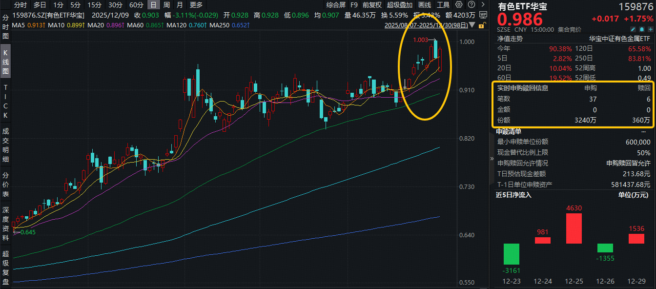 三、历史新高后,再涨1.75%!有色ETF华宝(159876)获资金净申购2880万份!机构:明年有色牛或延续亮眼表现!