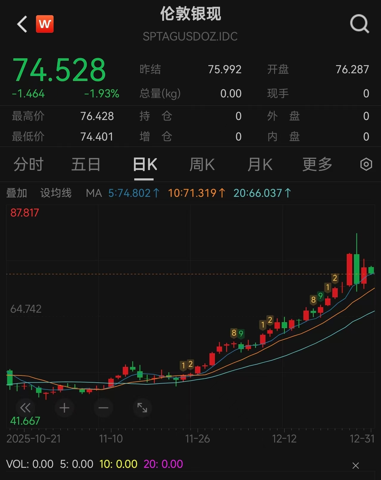 与股市的平淡形成鲜明对比的,是商品市场的惊涛骇浪,尤其是白银。在12月29日暴跌约9%之后,白银价格在30日上演强势反弹,日内最大涨幅超过8%,最终收涨近6%。这种“史诗级”的波动,让贵金属市场成为全球瞩目的焦点。