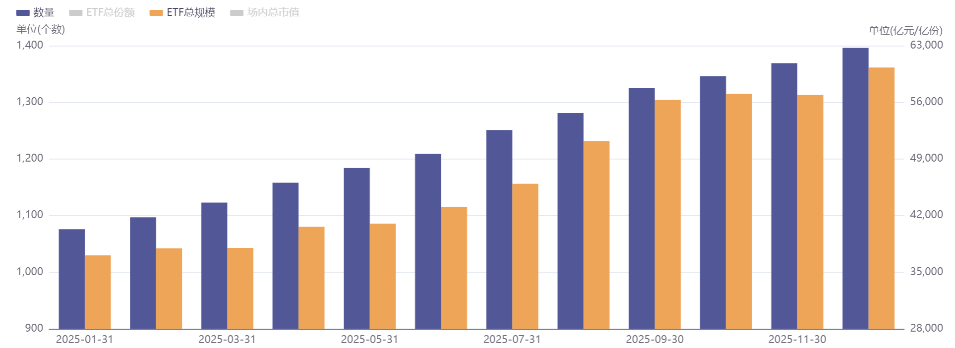 秋去冬来,时光荏苒,转眼2025年也已经走到最后一天。如果给2025年的中国资本市场贴标签,那一定少不了——“ETF的大时代”。 在短短一年时间里,我们见证了ETF的规模从4亿飙升到5亿,而在12月尾声全市场ETF总规模正式站上6万亿元!短短一年,暴增超60%。
