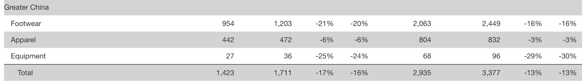 大中华区营收连续六个季度下滑,第二季度下降17%,已成为NIKE增长的最大负担。