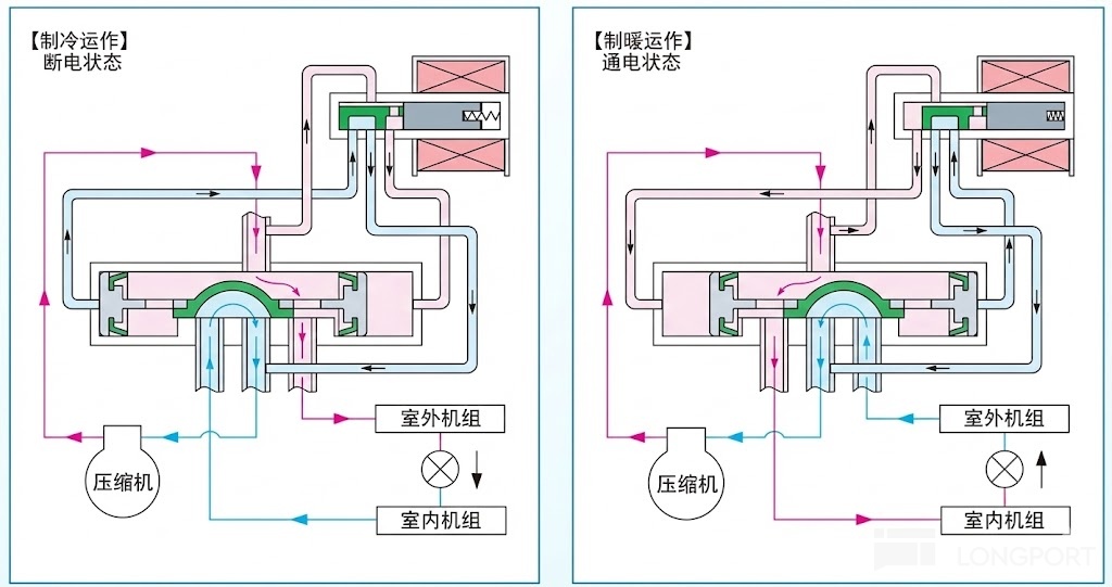 图:四通阀的工作原理