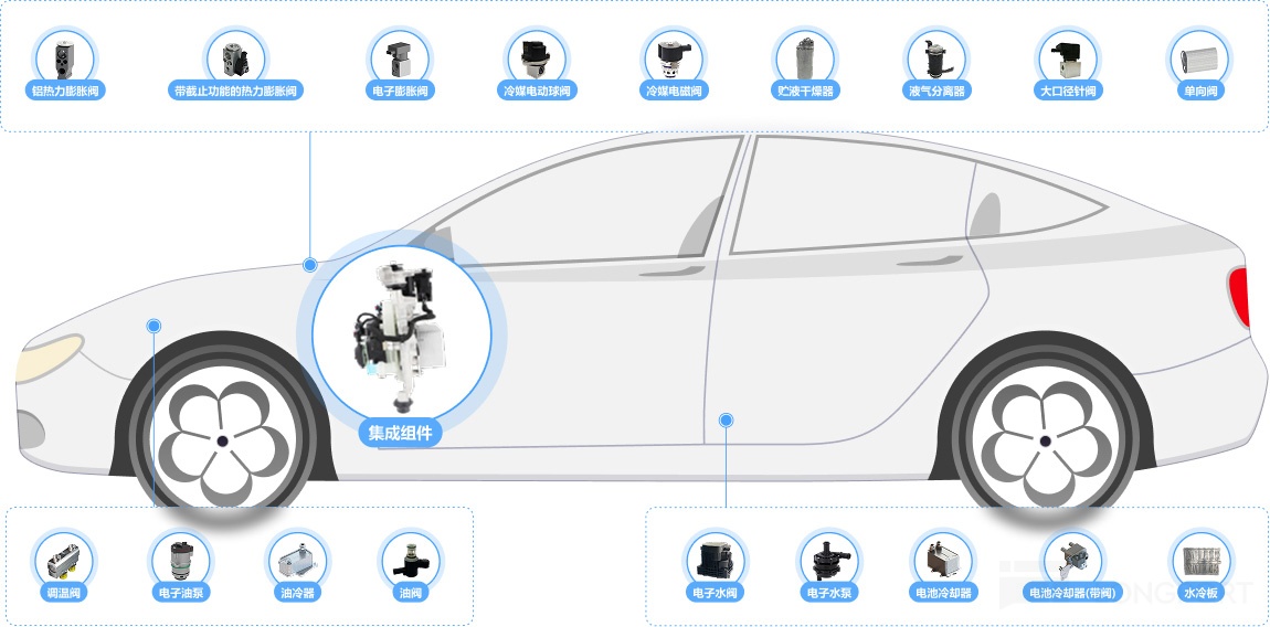 - 各类阀:热力膨胀阀、电子膨胀阀、电磁阀、多通阀等;
