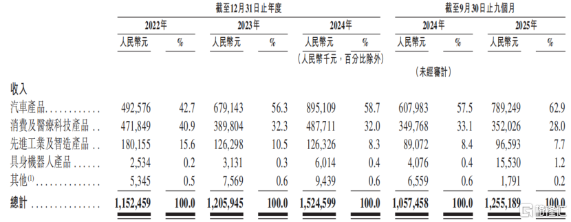 2022年至2024年,公司来自汽车产品的收入由4.93亿元增长至8.95亿元,占比由42.7%增长至58.7%。