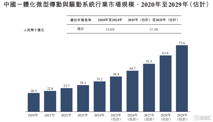 根据弗若斯特沙利文报告,中国一体化微型传动与驱动系统市场规模已由2020年的203亿元增长至2024年的332亿元,年均复合增长率达13.0%。