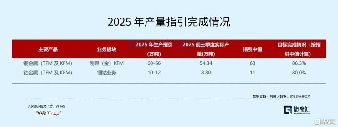产能扩张正在提速:刚果(金)TFM矿山已形成45万吨/年铜、3.7万吨/年钴产能,KFM矿山具备15万吨/年铜、5万吨/年钴产能。2025年10月落地的KFM二期项目,计划投资10.84亿美元,2027年投产后将新增10万吨铜金属产量,为2028年实现80-100万吨铜产量目标奠定基础。