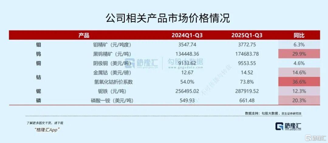 钼钨业务聚焦中国境内优质矿山,通过提升回收率稳定产量;铌磷业务深耕巴西市场,是全球第二大铌矿运营商,铌铁产品全球市占率达30%,直接供应波音、空客等航空巨头。