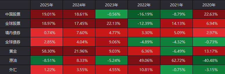 答案或许出乎很多人意料。中国股市表现不错,但黄金等贵金属的涨幅更是惊人。Wind数据显示,从2025年初至12月25日,中国股票上涨19.01%,全球股票上涨18.97%,境内债券上涨0.74%,而黄金一骑绝尘上涨58.30%。