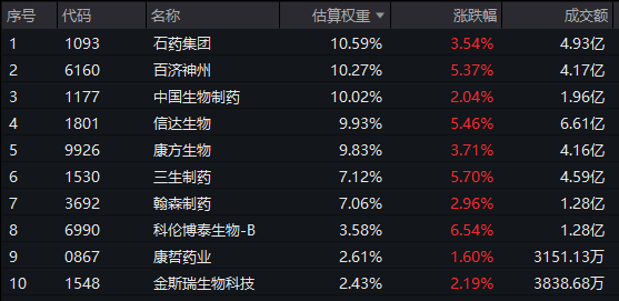 港股通创新药ETF(159570)标的指数权重股多数飘红:科伦博泰生物-B涨超6%,百济神州、信达生物、三生制药涨超5%,石药集团、康方生物涨超3%。