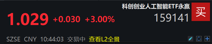 AI产业资本闭环加速成型,同类规模最大的科创创业人工智能ETF永赢(159141)涨超3%!