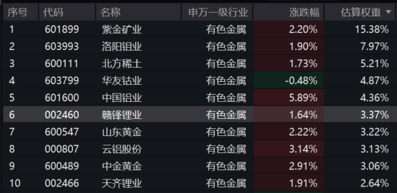 风险提示:基金有风险,投资需谨慎。投资人应当阅读《基金合同》《招募说明书》《产品资料概要》等法律文件,了解基金的风险收益特征,特别是特有风险,并根据自身投资目的、投资经验、资产状况等判断是否和自身风险承受能力相适应。基金管理人承诺以诚实信用、谨慎尽责的原则管理和运用基金资产,但不保证基金一定盈利或本金不受损失。以上基金属于中等风险等级(R3)产品,适合经客户风险承受等级测评后结果为平衡型(C3)及以上的投资者。请投资者关注指数化投资的风险以及集中投资于细分有色指数成分股的持有风险,请关注部分指数成分股权重较大、集中度较高的风险,请关注指数化投资的风险、ETF运作风险、投资特定品种的特有风险等。文中提及个股仅为指数成份股客观展示列举,本文出现信息只作为参考,投资人须对任何自主决定的投资行为负责。本文中的任何观点、分析及预测不构成对阅读者任何形式的投资建议。