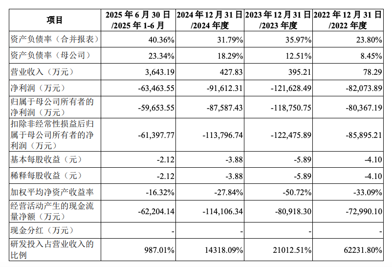 2022年至2024年及2025年上半年,蓝箭航天实现的归母净利润分别为-8.04亿元、-11.88亿元、-8.78亿元和-5.97亿元;同期,该公司的研发费用分别为4.87亿元、8.3亿元、6.13亿元和3.6亿元。