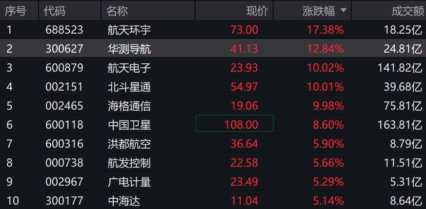 截至2026年1月6日 14:27,同类规模最大的通用航空ETF(159378)上涨3.42%。航天环宇(688523)涨超17%,华测导航(300627)涨超12%,航天电子(600879)、北斗星通(002151)、海格通信(002465)均涨停。