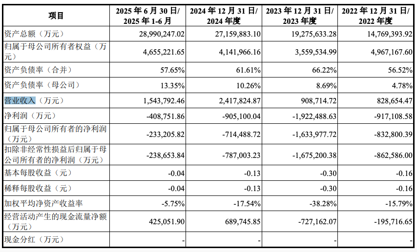 不过,长鑫科技尚未盈利。2022年至2024年及2025年上半年,该公司实现的营业收入分别为82.87亿元、90.87亿元、241.78亿元和154.38亿元,实现的归母净利润分别为-83.28亿元、-163.4亿元、-71.45亿元和-23.32亿元。