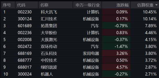 【机器人ETF基金(159213)标的指数前十大成分股】
