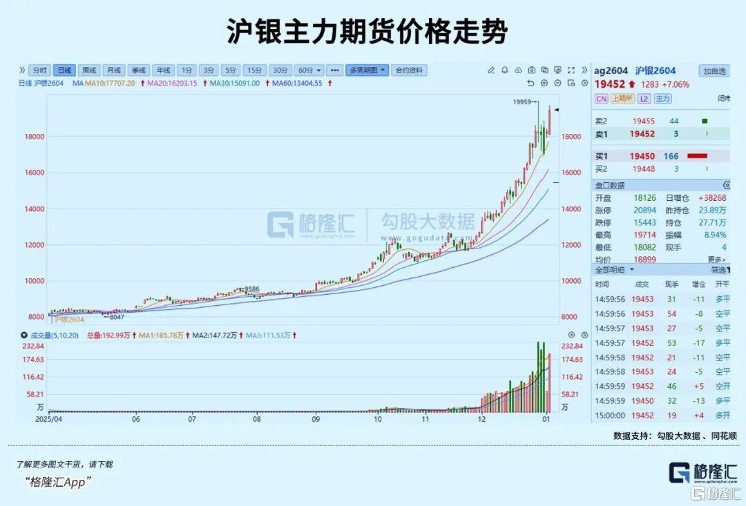 另一大关键催化因素来自银价。在经历大幅回撤后,银价重拾强势飙涨势头,1月6日沪银期货合约大涨超7%,单日总成交额高达8208.81亿元,远超其他期货品类。