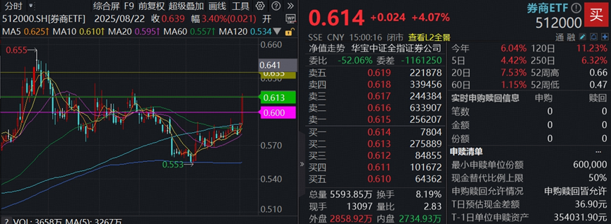 一、突然启动!东方财富爆量夺魁,顶流券商ETF(512000)飙涨逾4%,主力145亿巨资涌入
