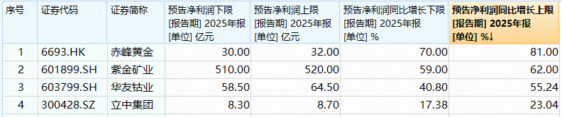 基本面上,截至1月5日,有色ETF华宝(159876)覆盖的60只有色金属行业龙头上市公司中,已有赤峰黄金、紫金矿业、华友钴业等上市公司披露2025年业绩预告,均预告净利润同比两位数增长,业绩表现亮眼。其中,权重股紫金矿业预计2025年度实现归母净利润510亿元至520亿元,同比增长59%至62%。