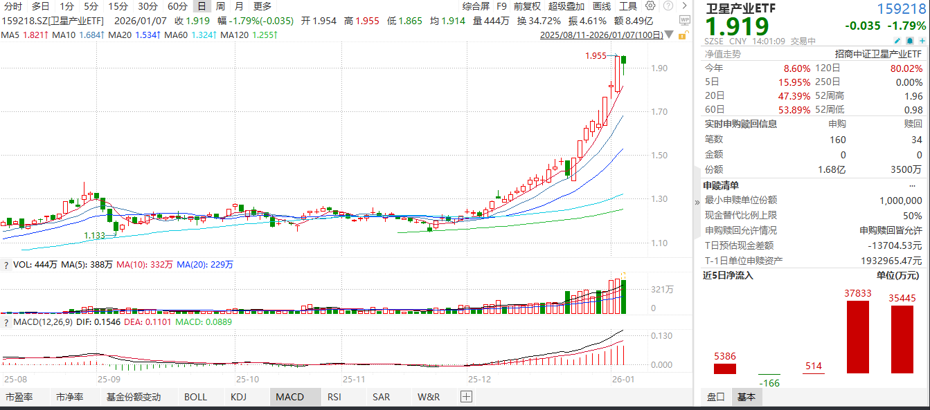 近1月中证卫星产业指数涨幅高达50.2%,成为赛道里最强选手,不仅实现八连阳,今日盘中一度从-4%到接近翻红,十分强势;而卫星产业ETF(159218)资金关注度同步上升,今日成交已超3.5亿,资金逢低加仓。这场“星辰大海”的盛宴,已经不是说说而已!