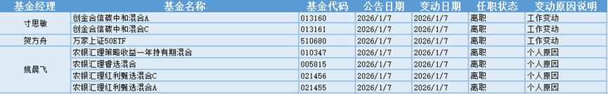 基金经理是一只基金产品最核心的成员,能决定一只基金的投资方向、投资策略以及投资风格,基金经理出色的择时选股能力和调研预测能力是基金业绩的有力保证,所以基金经理是投资者在选择基金产品时的重要依据。基金经理的变动很大程度上会影响到基金产品未来的表现,是一个需要特别关注的信息。1.7日共有11位基金经理发生任职变动。