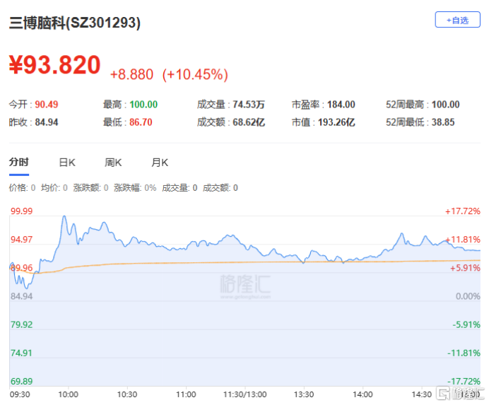 三博脑科:今日上涨10.45%,全天换手率46.31%,成交额68.62亿元。机构净买入2.66亿元,深股通净买入1.76亿元,营业部席位合计净卖出4.14亿元。