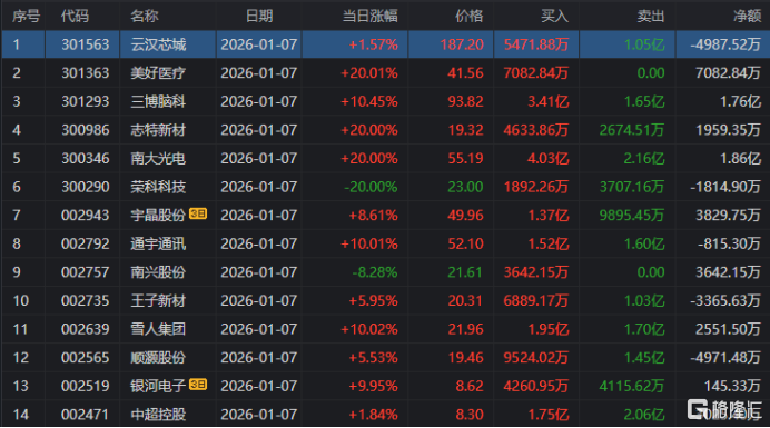 温州帮:净卖出南大光电9419万元、航天环宇3011万元