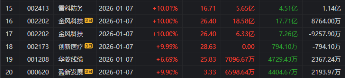 雷科防务:今日涨停,全天换手率65.12%,成交额132.30亿元。机构净卖出1.42亿元,深股通净买入1.14亿元,营业部席位合计净卖出4.75亿元。