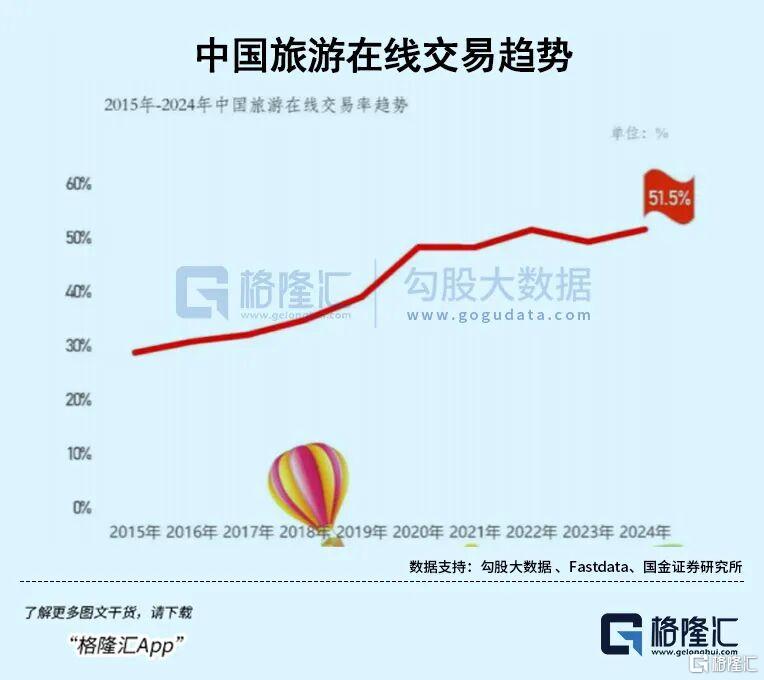 OTA渗透率持续提升重构行业格局。2024年国内OTA渗透率已达51.5%,且呈持续上升趋势,线上预订成为旅游消费的主流模式。携程作为行业龙头,凭借流量与供应链优势,持续抢占线下转移与行业增量市场份额,行业集中度进一步提升,强者恒强的格局愈发稳固。