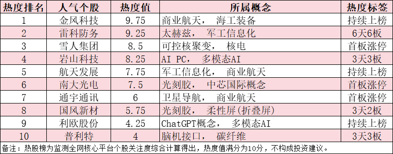 此外,海格通信、盈新发展、鲁信创投、平潭发展、北方导航等也热度靠前。