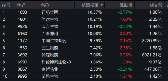 港股通创新药ETF(159570)标的指数权重股多数飘红:三生制药涨超2%,信达生物、科伦博泰生物-B涨超1%,百济神州、翰森制药微涨。