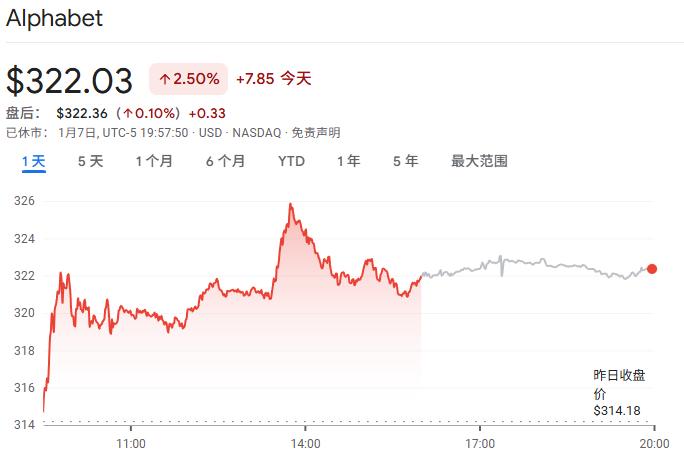 周三收盘时,谷歌股价上涨至322.03美元,而苹果股价持续承压,小幅下行,总市值降至约3.85万亿美元,这也让谷歌成为美国市值第二高的公司,仅次于排名首位的英伟达。