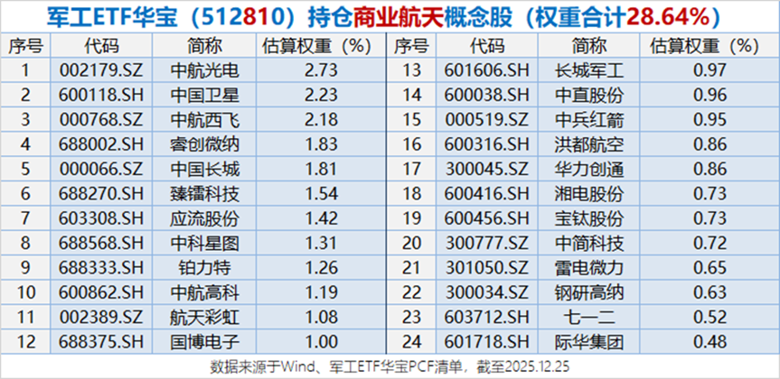 一、军工逆市爆发,商业航天满屏涨停!军工ETF华宝(512810)豪涨逾4%创新高!2026“军工大年稳了?