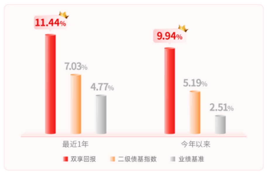 产品近1年涨幅达11.44%,不仅大幅跑赢业绩基准(4.77%),也显著超越二级债基指数。