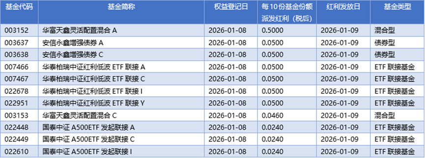 四、01月08日基金分红一览