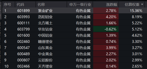 【有色50ETF(159652)标的指数前十大成分股】