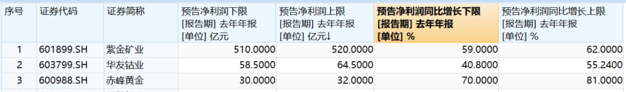 【细分有色指数成分股业绩预告情况】