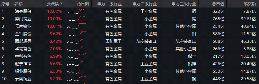 图:有色ETF华宝(159876)标的指数涨幅前10大成份股