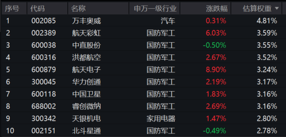 航空ETF基金(159257)标的指数前十大成分股