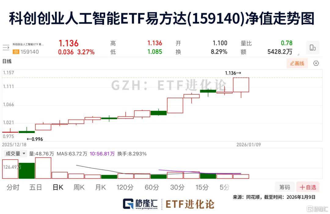 瞄准双创人工智能板块的科创创业人工智能ETF易方达(159140),上市15天中,有11天上涨,累计录得13.83%的涨幅。该ETF跟踪的科创创业AI指数,聚焦国产芯片与光模块,受益于海内外AI基础狂潮的爆发。