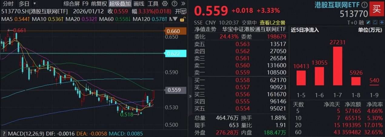 ETF盘中资讯|监管启动外卖行业反垄断调查评估,美团涨近6%!港股互联网ETF(513770)涨超3%,连日大举吸金5.72亿元
