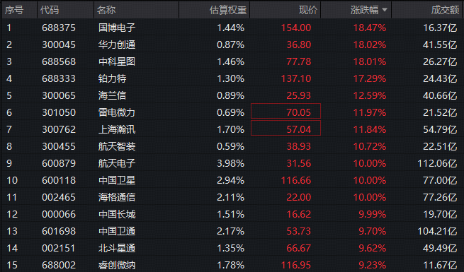 ETF盘中资讯|商业航天领涨市场,军工全线狂飙!512810再度暴涨逾5%,11股涨超10%,航天电子7天5板