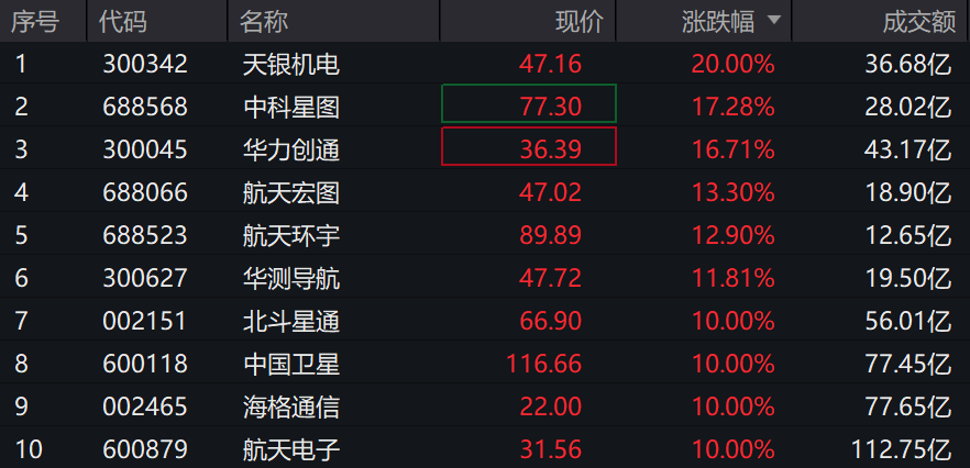 截至2026年1月12日 13:03,同类规模最大的通用航空ETF(159378)强势上涨7.02%。成分股天银机电20CM涨停,中国卫星、北斗星通、海格通信、航天电子均10CM涨停。