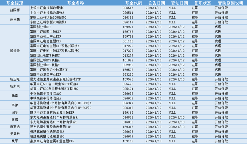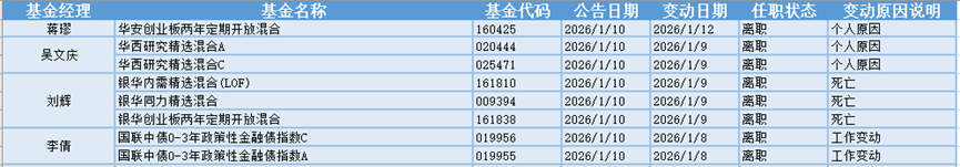 基金经理是一只基金产品最核心的成员,能决定一只基金的投资方向、投资策略以及投资风格,基金经理出色的择时选股能力和调研预测能力是基金业绩的有力保证,所以基金经理是投资者在选择基金产品时的重要依据。基金经理的变动很大程度上会影响到基金产品未来的表现,是一个需要特别关注的信息。1.10-1.12日共有32位基金经理发生任职变动。