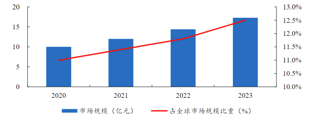 我国脑机接口(BCI)产业已从“跟跑”跃升至“并跑 局部领跑”阶段,在全球技术版图中的话语权持续提升。量子位《2024脑机接口白皮书》显示,2020年国内狭义BCI市场(设备、软件及核心耗材)规模约10亿元人民币,仅占全球份额的7%;仅用三年时间,2023年市场规模便扩大到约17.3亿元,全球占比同步提升至12.5%,年复合增长率(CAGR)高达20%,远超同期全球14%的平均水平。