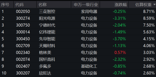 【电池50ETF(159796)标的指数前十大成分股】