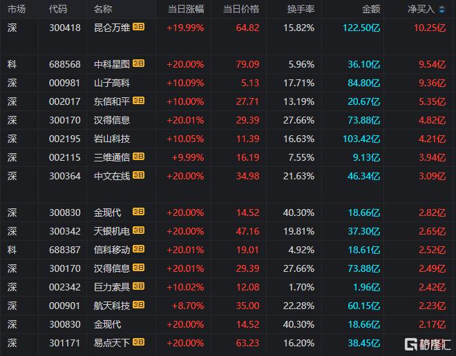 龙虎榜 | 徐晓近4亿杀入“五连板”牛股,章盟主3.8亿抢筹昆仑万维