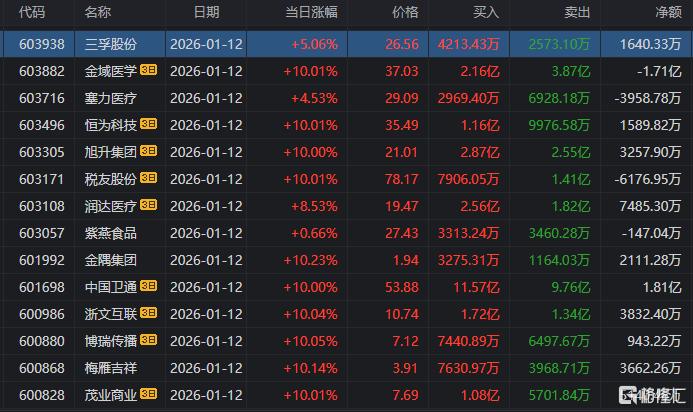 龙虎榜单日净买入额前三为山子高科、汉得信息、岩山科技,分别为9.36亿元、4.82亿元、4.21亿元。