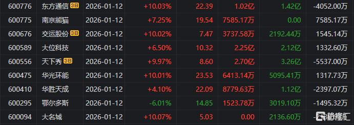 涪陵广场路:净买入汉得信息3.219亿元、大位科技1.4亿元