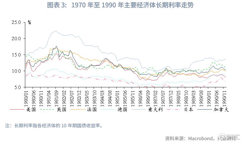 具体来看,本轮周期的“早期扩张”阶段利率呈现高位震荡式下行。主要发达经济体在20世纪70年代普遍经历高利率、高波动的利率环境,政策利率虽自历史高位逐步回落,但下行过程中伴随明显的剧烈波动。各国长期利率的标准差普遍超过1%,显示出显著的不确定性。该阶段的核心特征在于,政策推动下的通胀预期逐步被重新锚定,为随后债务周期的扩张奠定了通胀回落和货币稳定的基础。