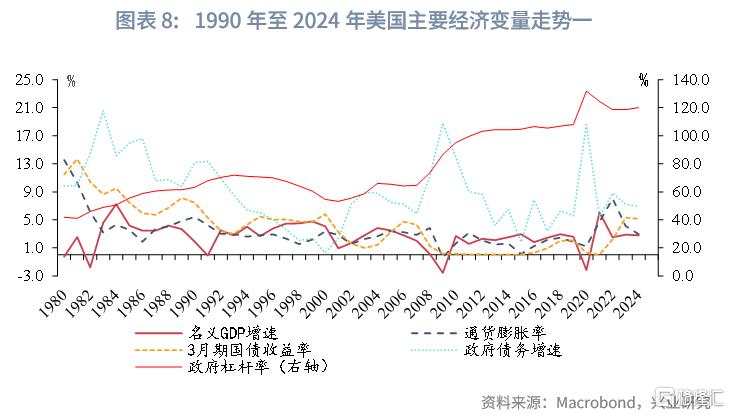 展望未来,流动性已不仅是影响未来资产价格走势的重要因素,在当前全球流动性已超GDP的背景下,也已经是影响全球宏观经济的重要因素。在弱潜在增速与高债务约束下,资产价格对流动性的敏感度可能长期维持高位。美股在资产负债表渠道中的权重处于历史高位,使其更容易成为政策关注的焦点,甚至替代传统信用渠道,承担“稳定器”角色。不过考虑到美国当前的经济结构已与20世纪70年代存在较大差异,即使美股出现较大波动,资金也很难大量外溢至实体经济,这使得资金外溢对通胀影响总体相对受控,叠加人口老龄化趋势难以逆转,长期利率中枢大幅上行风险(指大幅突破5%-6%区间)总体可控。同时若长期利率存在较大的上行风险,类似于二战后的收益率控制手段也是可以采用并在一定程度上压制利率的。